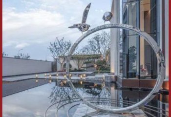不銹鋼異性圓環雕塑——室外民宿水景裝飾