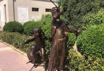 仿民俗情景玻璃鋼叉魚銅人物