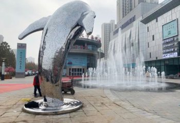 不銹鋼鏡面海豚公園雕塑探索海洋的美麗